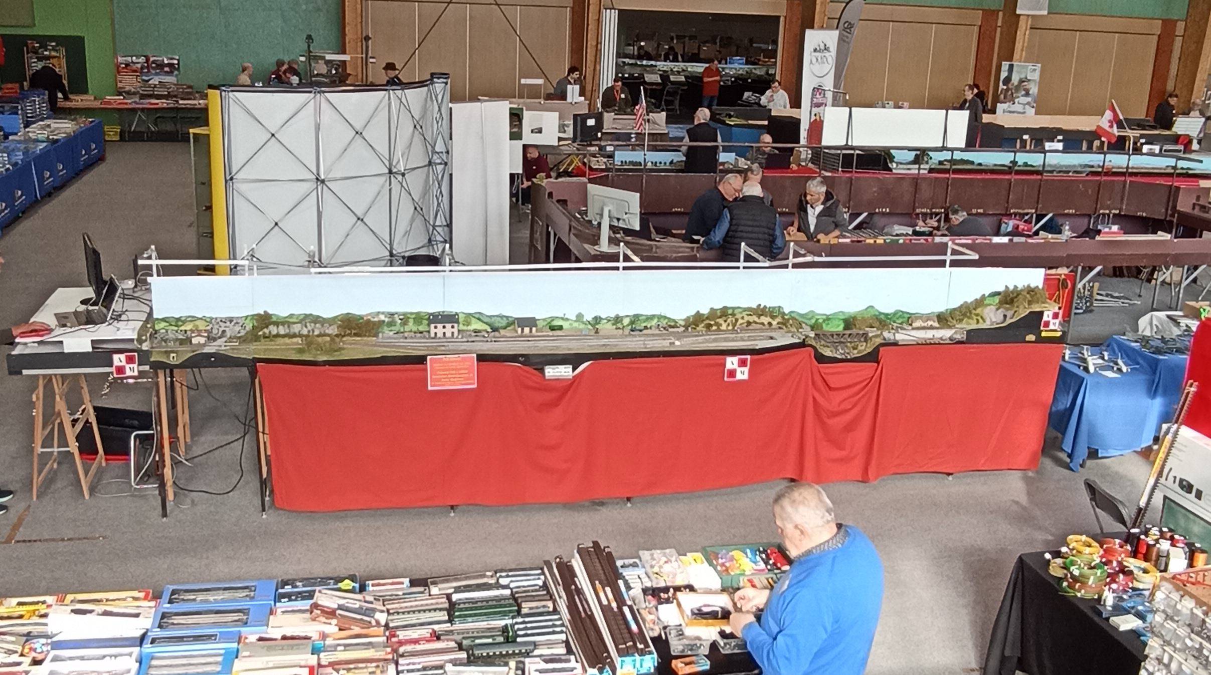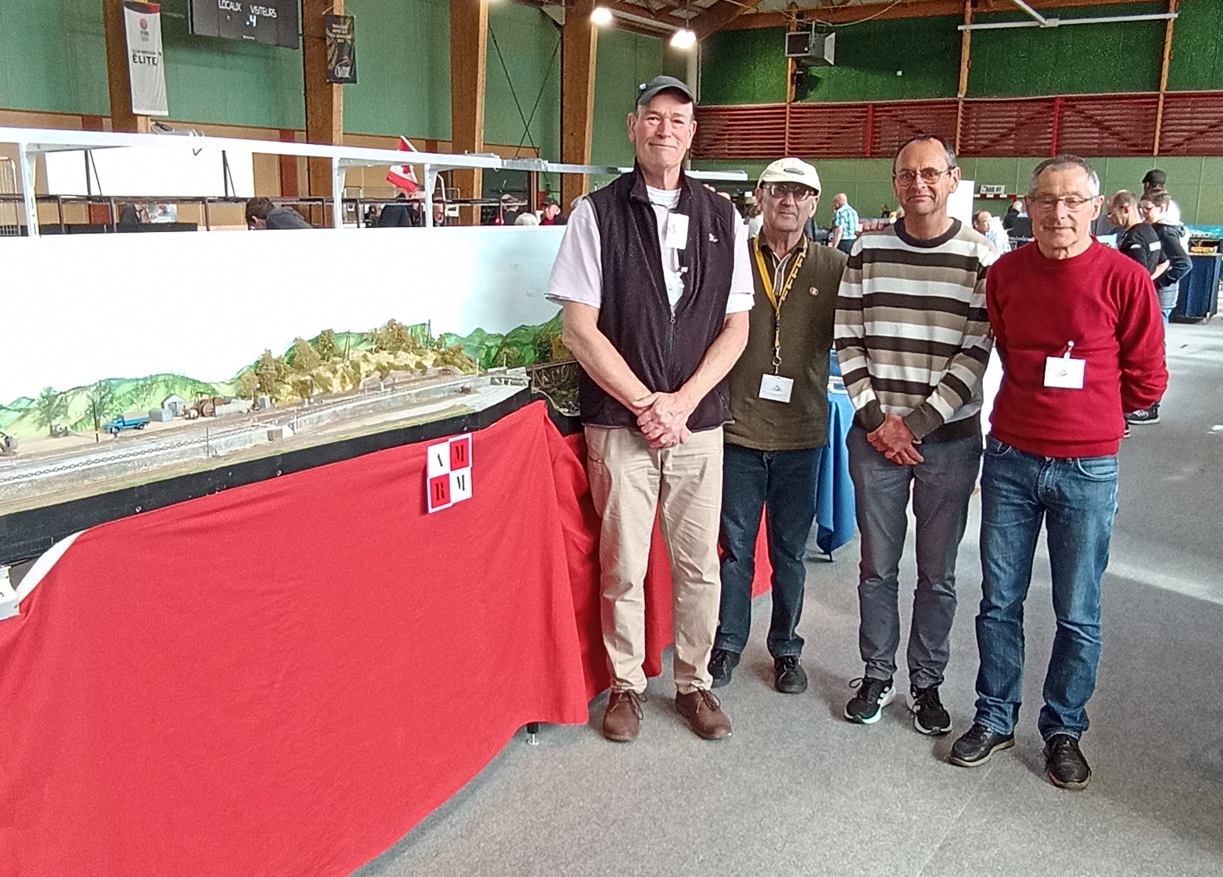 François, Gérard, Michel et Alain y ont présenté notre réseau Polignac. Les visiteurs et organisateurs ont apprécié notre réseau par son décor, les modules de Richard et le PN en particulier, ainsi que par le côté technique dont le système d'exploitation calqué sur le fonctionnement d'une gare réelle, développé par Julien et Michel Villo, a impressionné certains connaisseurs !