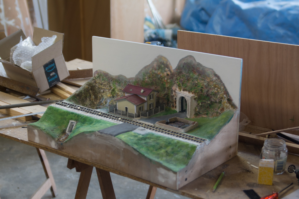 C'est là que le Modulino prendra son aspect définitif. La voie est collée sur une semelle en liège puis ballastée avec du sable concassé et tamisé à granulométrie adaptée à l'échelle HO.