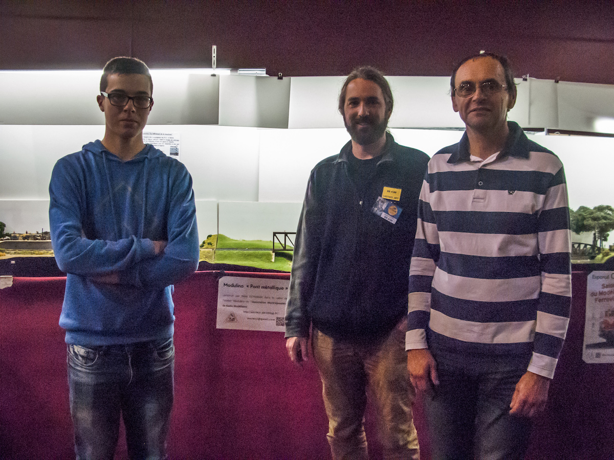 Rémi, Sylvain et Michel devant le réseau Modulino lors de l'Exposition de Castres
