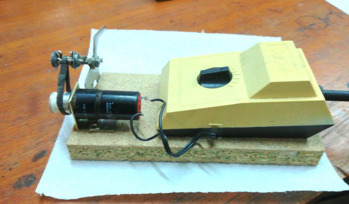 L'outil permet de faire tourner l'essieu, pendant qu'on usine le boudin de roue avec la DREMEL.