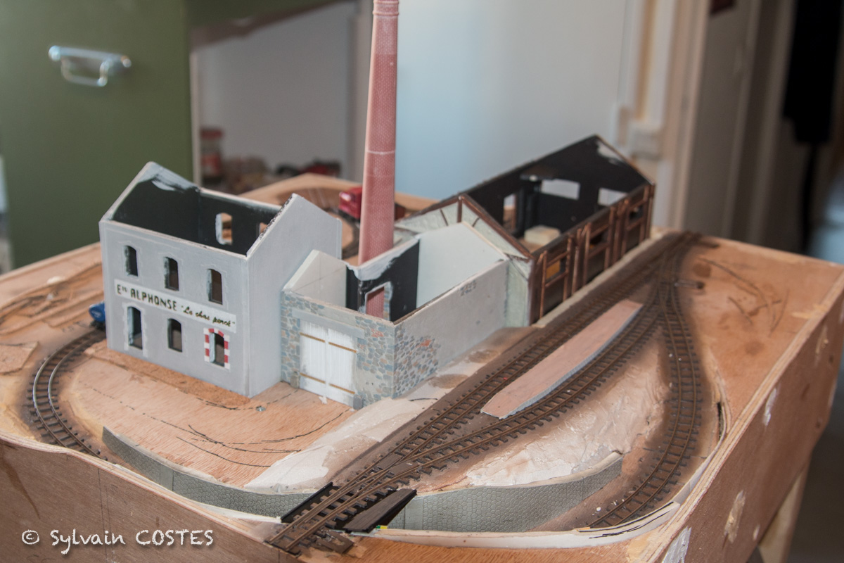 Les bâtiments commencent à sortir de terre. L'administration et la chaufferie sont en carton plume pelé. L'administration est crépie avec de la peinture épaisse appliquée avec un tampon de mousse tandis que la chaufferie est gravée pour laisser apparaitre les murs en galets.