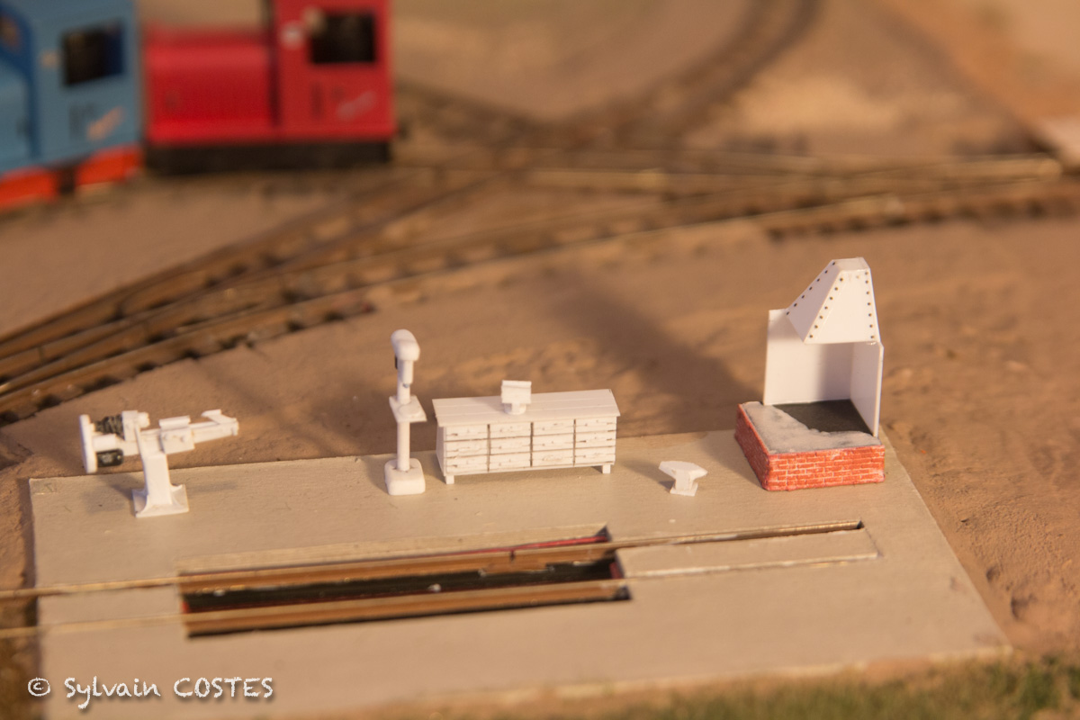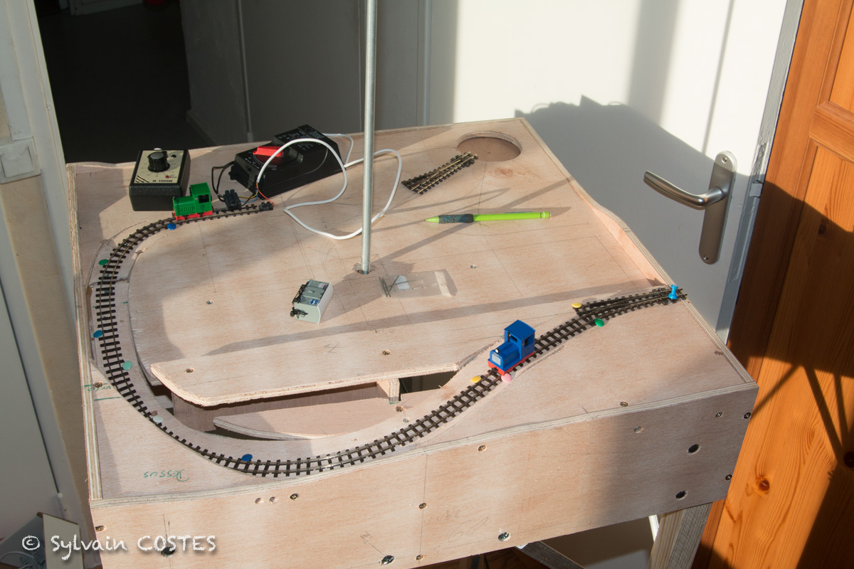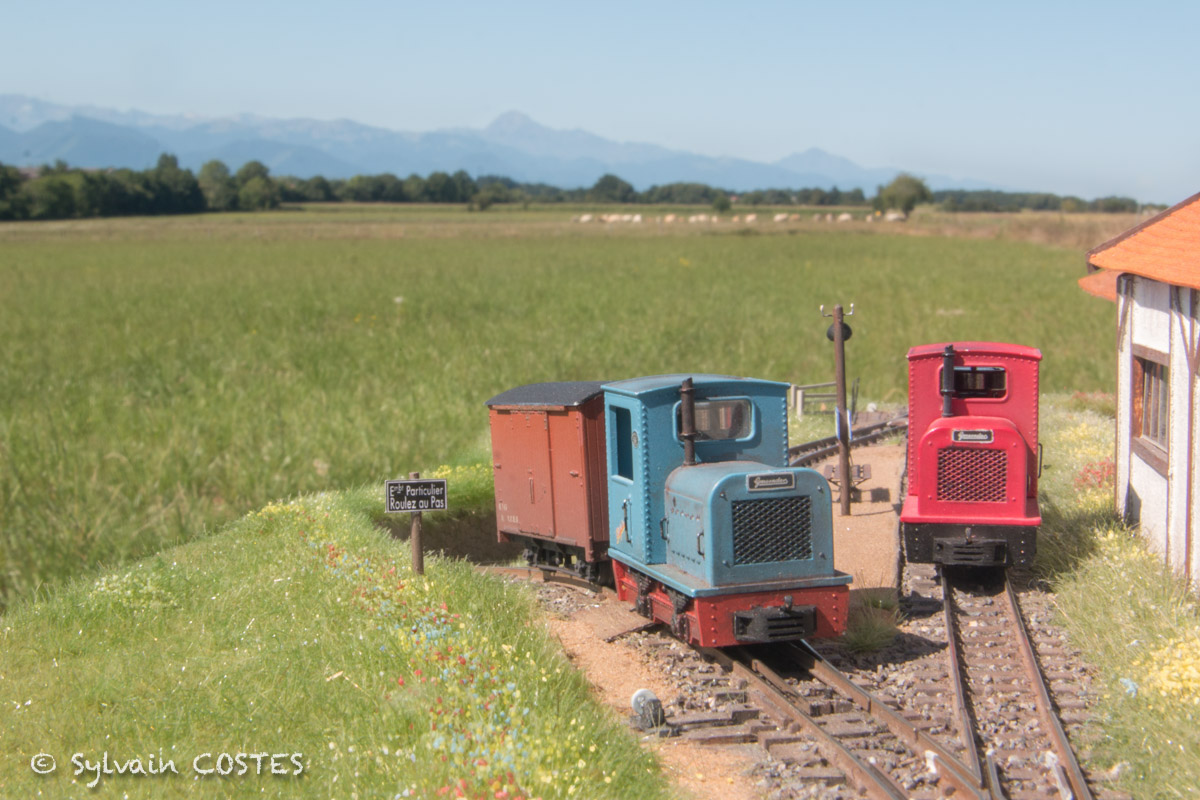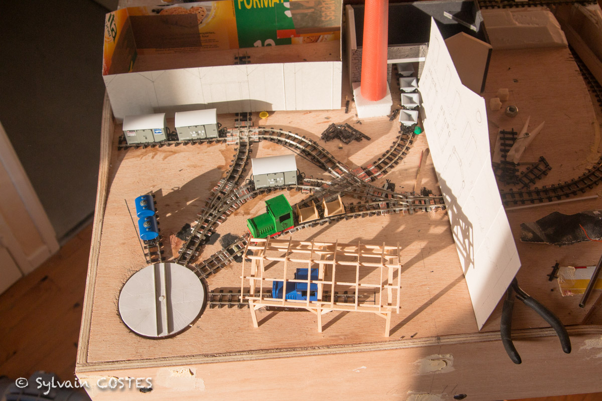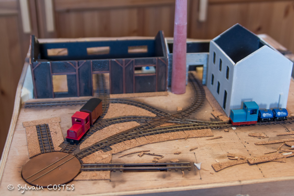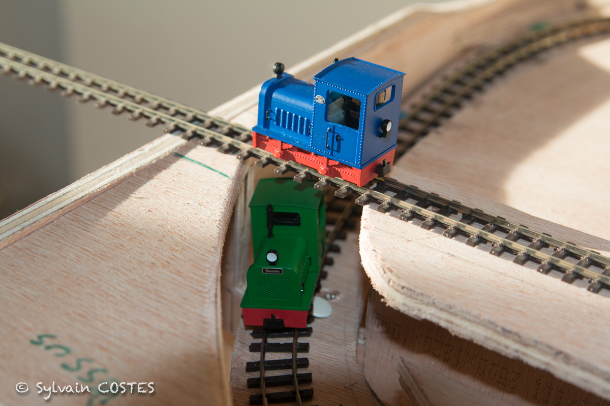 La voie embranchée doit passer en dessous de la voie principale. J'essaye le bon passage des locotracteurs Minitrains à qui sera confiée la desserte.