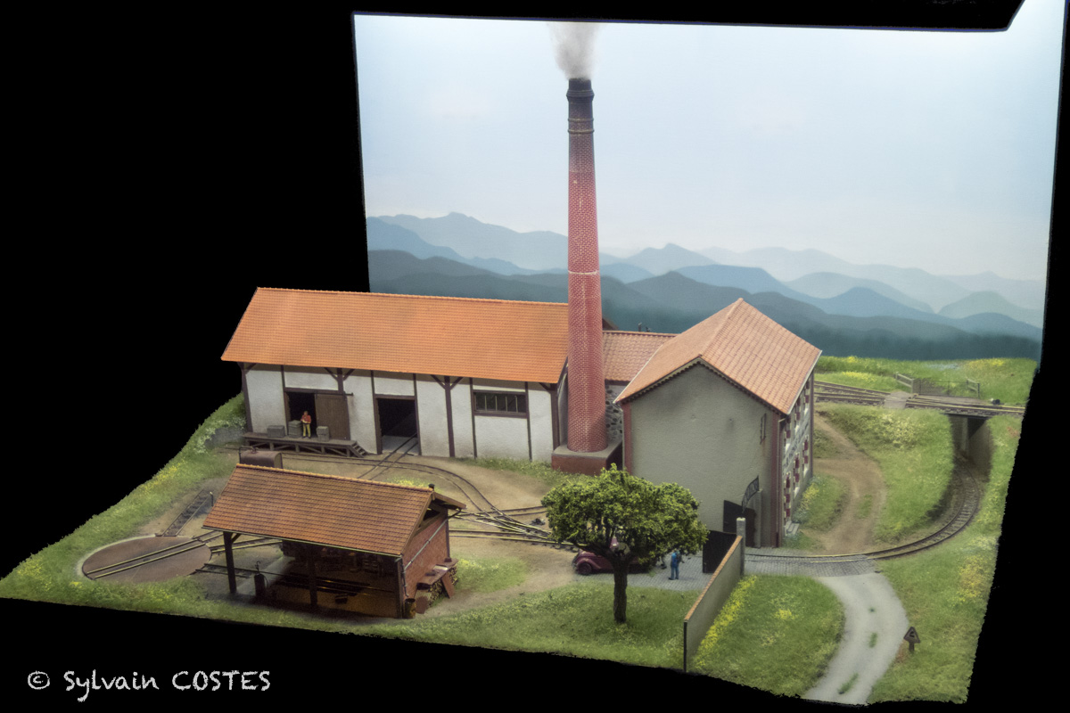 Côté usine, le plan de voie est complexe: il faut desservir à la fois le quai de chargement, la chaufferie, l'atelier de production, la station service et l'atelier des locotracteurs.