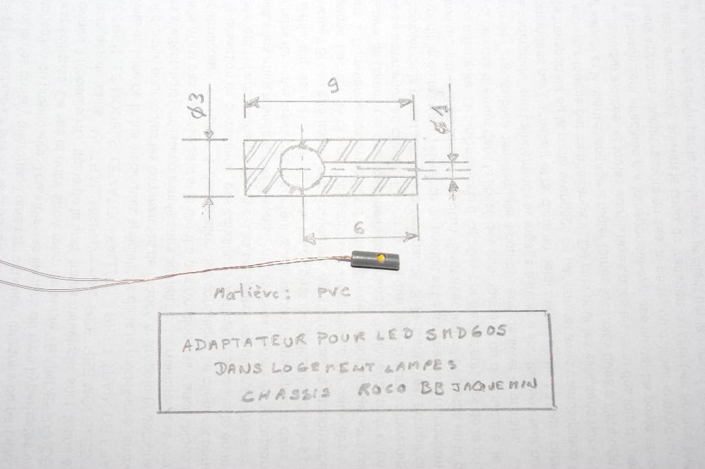 Les supports de LED sont réalisés dans une chute de grappe plastique de maquette diamètre 3 mm